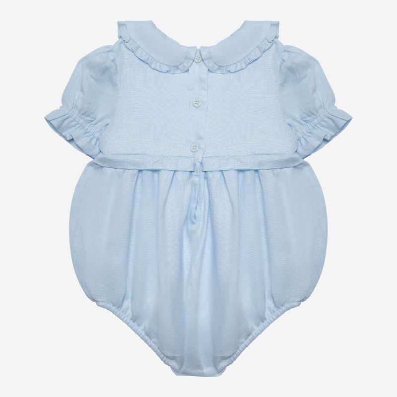 Romper de Bebê Feminino em Linho com Ponto Smock