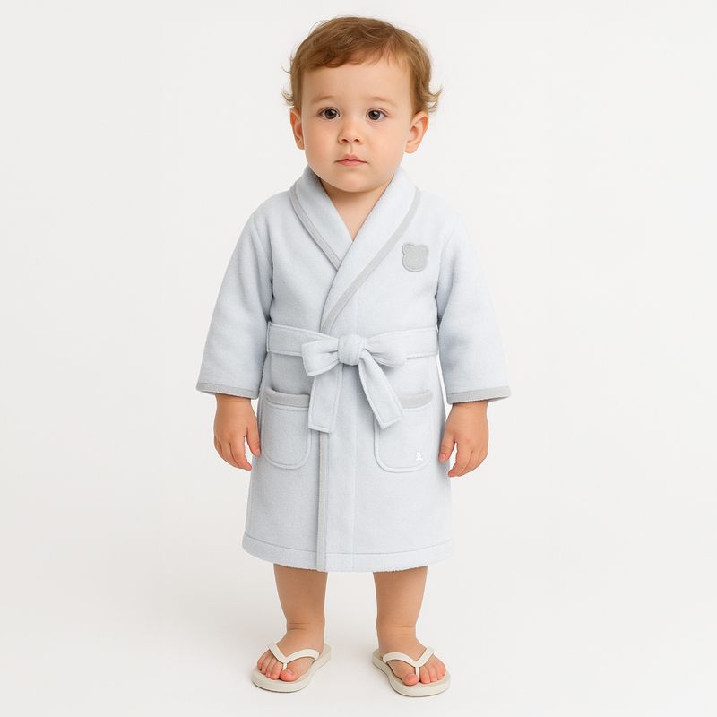 Roupão de bebê para banho com absorção eficiente. Nada como envolver o bebê com suavidade e aconchego após o banho! Este roupão atoalhado unissex foi desenvolvido para proporcionar o melhor cuidado, garantindo absorção eficiente e um toque macio para a pele do bebê. Seu design clássico conta com bolsos funcionais, trazendo praticidade e um charme extra para a peça.
