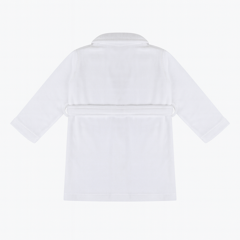 Roupão Infantil Branco em tecido felpudo de 500 g que oferece um toque macio, quente e extremamente aconchegante, perfeito para envolver a pele da criança após o banho. A charmosa gola xale em jacquard traz um detalhe sutil e elegante, mantendo o visual clássico e acolhedor característico do estilo Paola da Vinci.