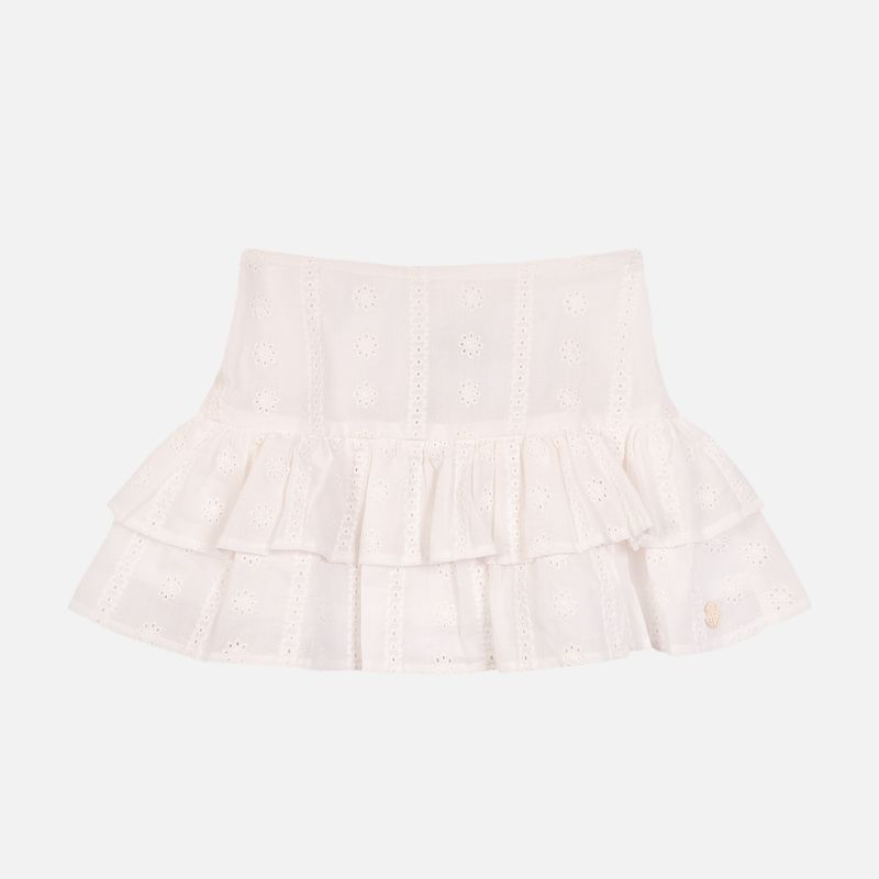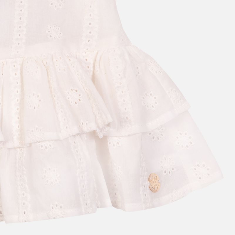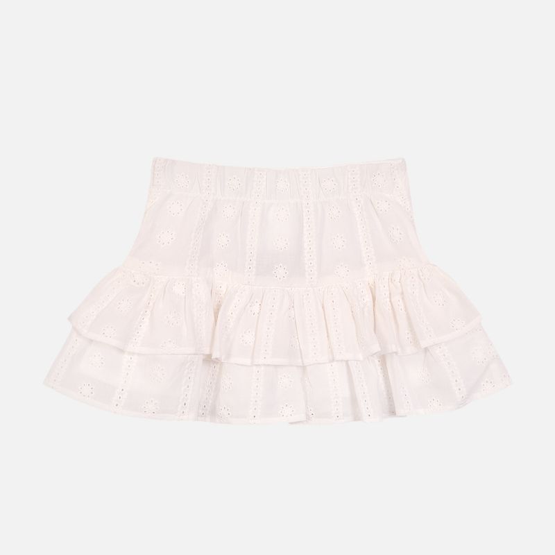 Saia bebê Laise Florus branca é pura delicadeza e leveza. Confeccionada em laise de algodão, um tecido nobre e respirável, apresenta bordados florais vazados que trazem textura e um charme artesanal à peça. O modelo com babados duplos proporciona um movimento suave e gracioso, ideal para ocasiões especiais ou momentos de passeio.