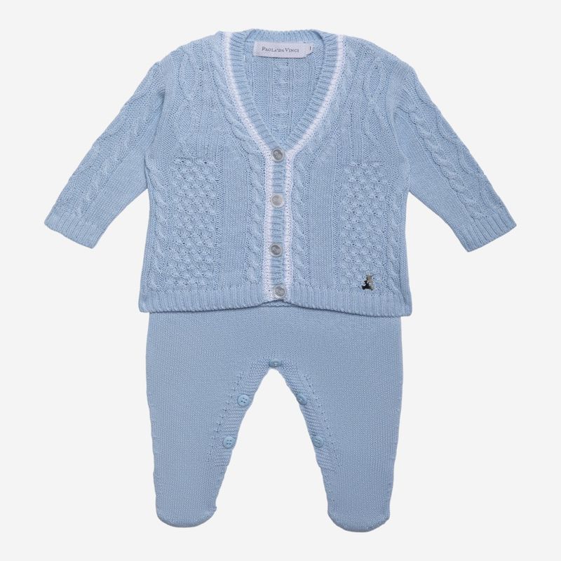 A saída de maternidade bebê menino é um conjunto delicado e atemporal, desenvolvido em tricô com linha mista de algodão, garantindo um toque macio e agradável para o bebê. Seu visual encantador apresenta pontos trança e frisos no caimento, agregando sofisticação e textura ao conjunto. Composto por uma jardineira com abertura prática e um casaquinho com frisos, essa saída de maternidade proporciona conforto, praticidade e um charme clássico para a chegada do bebê.
