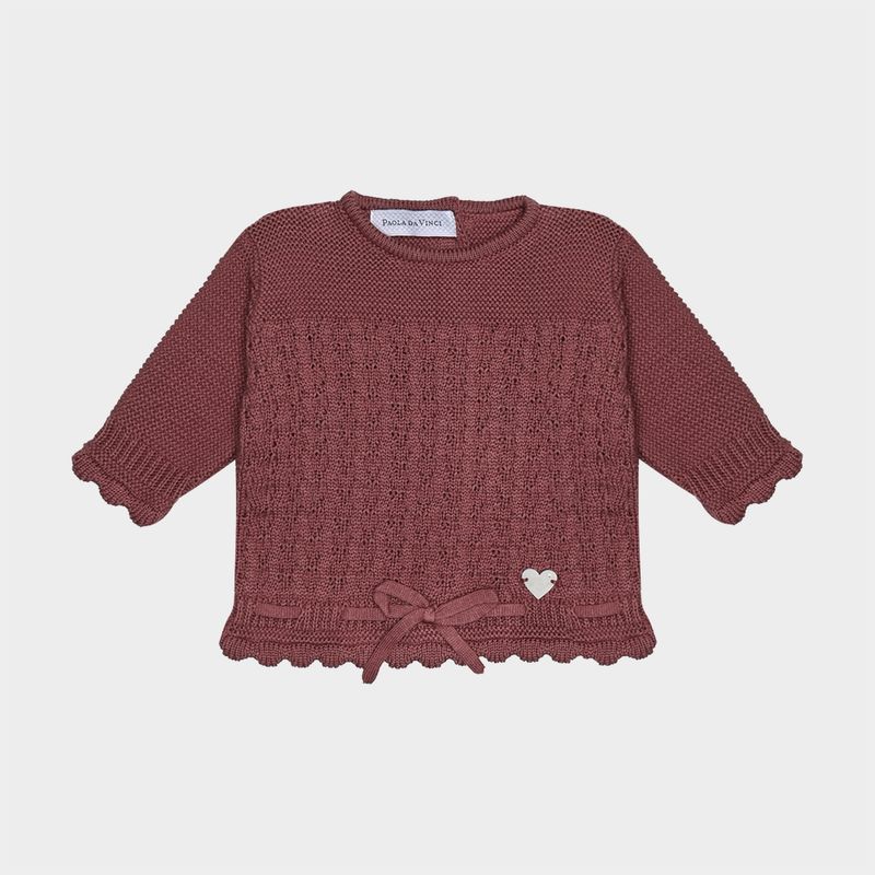 O casaco traz acabamento com borda ondulada e laço passafita, além de fechamento nas costas por botões de madrepérola, que facilitam o vestir. A jardineira, sem mangas e com pezinho fechado, complementa o look com design clean e sofisticado.