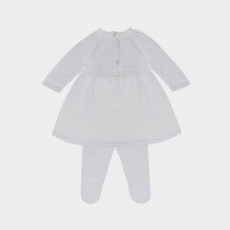 Este modelo de saída de maternidade feminina oferece os melhores materiais, cuidando da pele da bebê com a textura suave do tricô com linhas de algodão que mantém também a temperatura corporal ideal. Se destaca com os diferentes pontos elaborados com padronagens que adicionam a elegância do visual artesanal, além de proporcionar um caimento soltinho do vestido que forma uma combinação linda com a meia calça completando o modelo com excelente flexibilidade. Disponível em três cores.