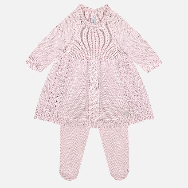 Conjunto vestido bebê em tricô confeccionado em algodão macio, composto por vestido bebê, calça bebê em tricô e manta coordenada, pensado para acolher com conforto e elegância desde os primeiros dias. O toque suave do tricô em algodão envolve o bebê com delicadeza, tornando o conjunto ideal para momentos especiais.