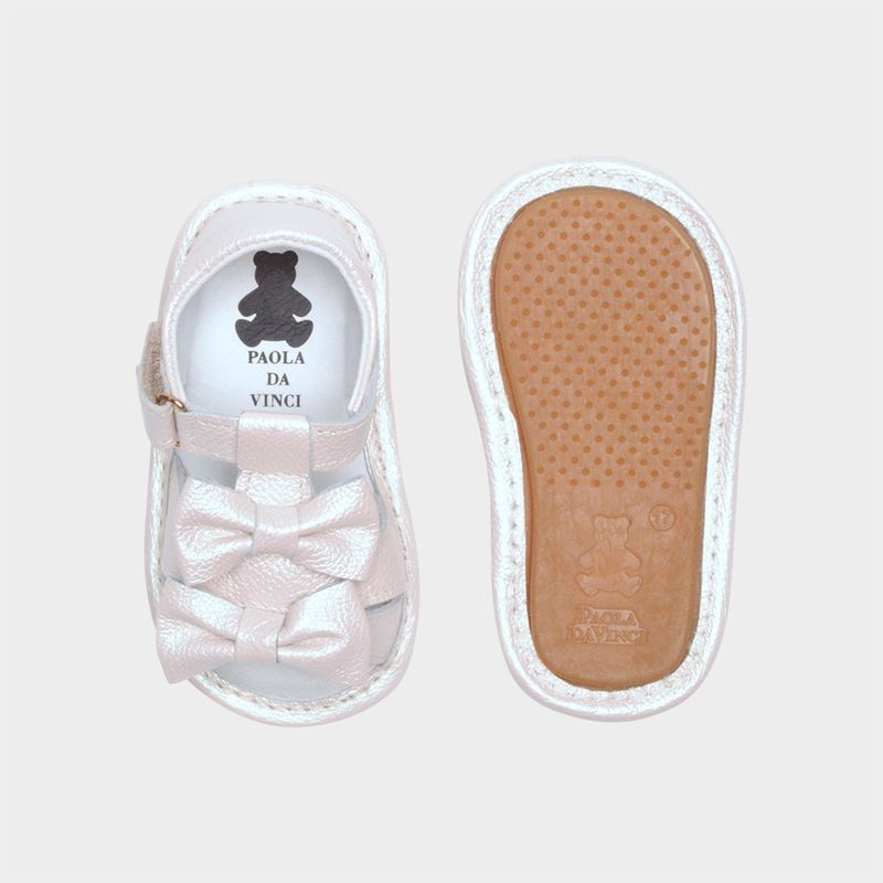 A sandália de bebê feminina se adapta as produções com encanto, complementando o look de forma harmoniosa com a presença do laço duplo no cabedal. Ela é desenvolvida em couro estampa fly, que apresenta um craquelado mais espaçado que proporciona um couro ainda mais macio e com fibras mais resistentes. Apresenta palmilha em couro estilizada, pequeno fechamento na lateral através do velcro e finaliza com o solado antiderrapante em formato inteiriço.