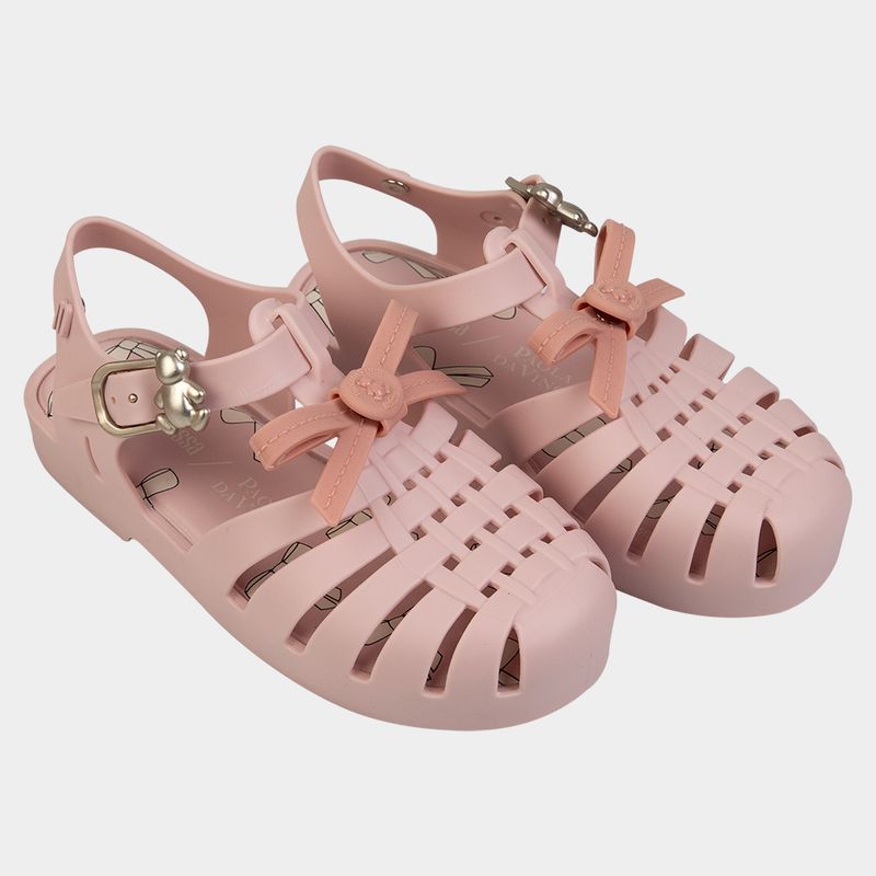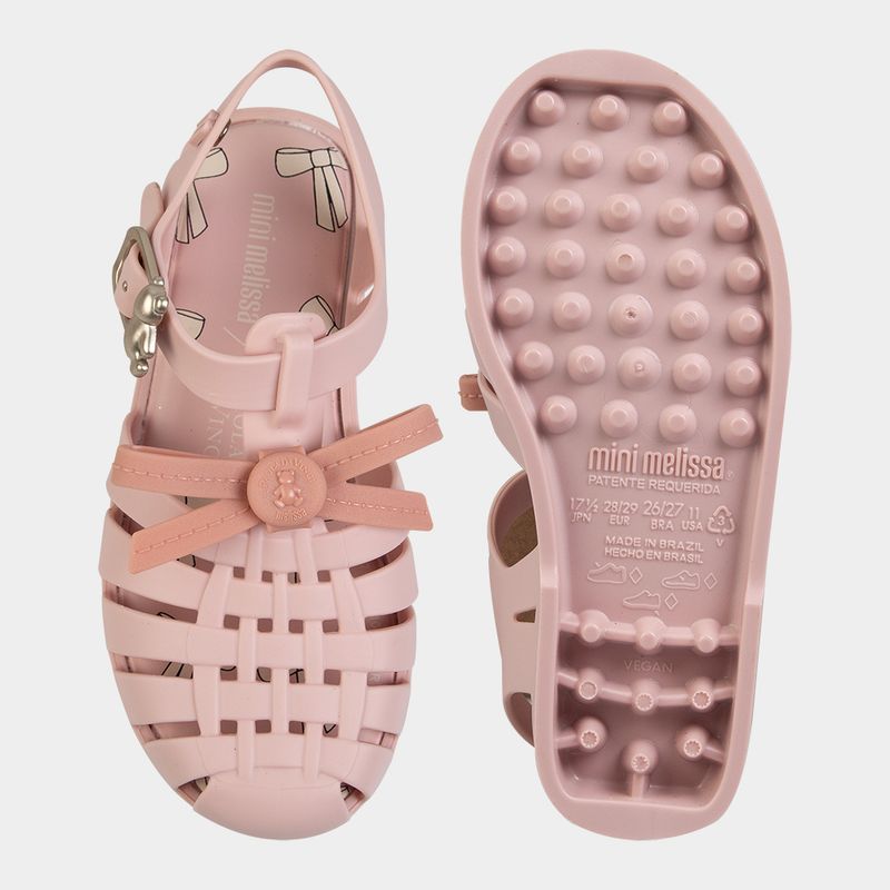 Sandália infantil Melissa une conforto, estilo e o charme delicado. Produzida em PVC Melflex macio e flexível, material exclusivo da Melissa, oferece leveza, segurança e conforto para os pezinhos mais delicados. O design trançado na parte frontal traz um toque retrô, enquanto o laço com o icônico urso Bimbi no centro adiciona elegância e doçura ao visual.