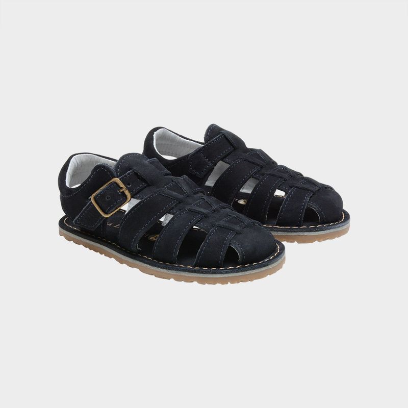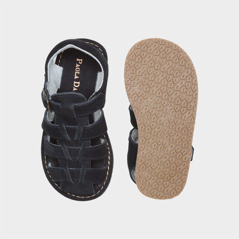 Com design clássico e funcional, esta sandália papete foi criada para acompanhar os primeiros passos com conforto e elegância. Confeccionada em couro legítimo na cor azul-marinho, apresenta tiras largas entrelaçadas que proporcionam firmeza ao caminhar e ventilação ideal para os pés dos pequenos.