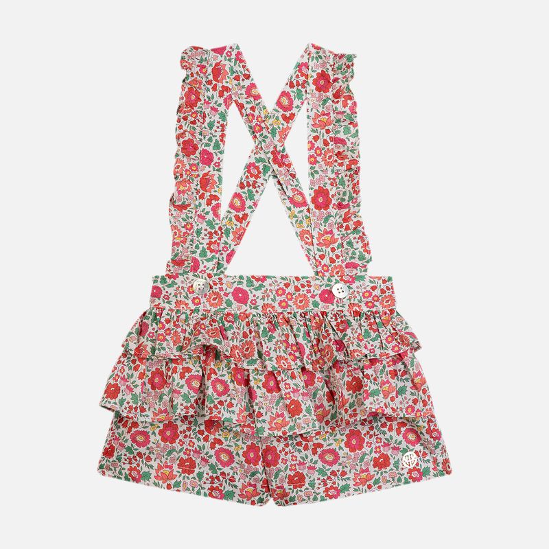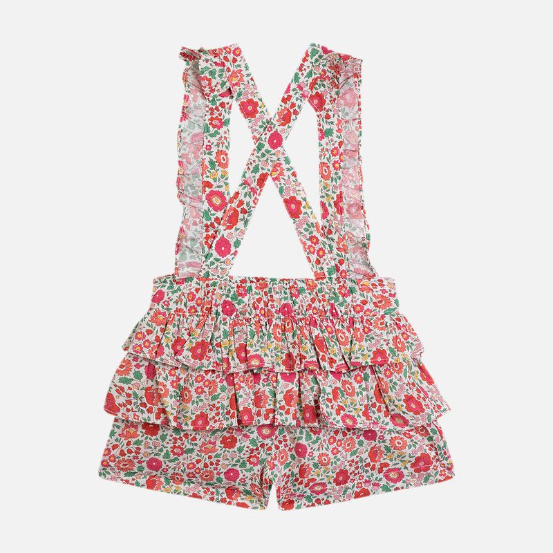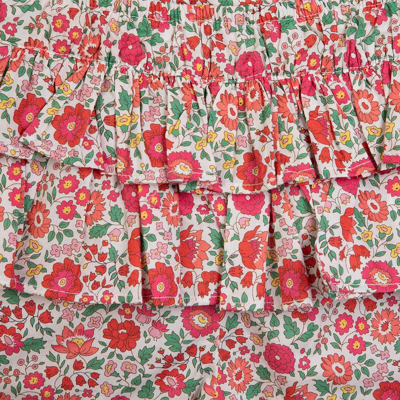 Shorts bebê feminino confeccionado em tecido liberty de algodão, com estampa floral vermelha delicada e atemporal. O algodão proporciona toque macio, leveza e excelente respirabilidade, garantindo conforto absoluto para a pele sensível do bebê, com sensação acolhedora em todos os momentos.