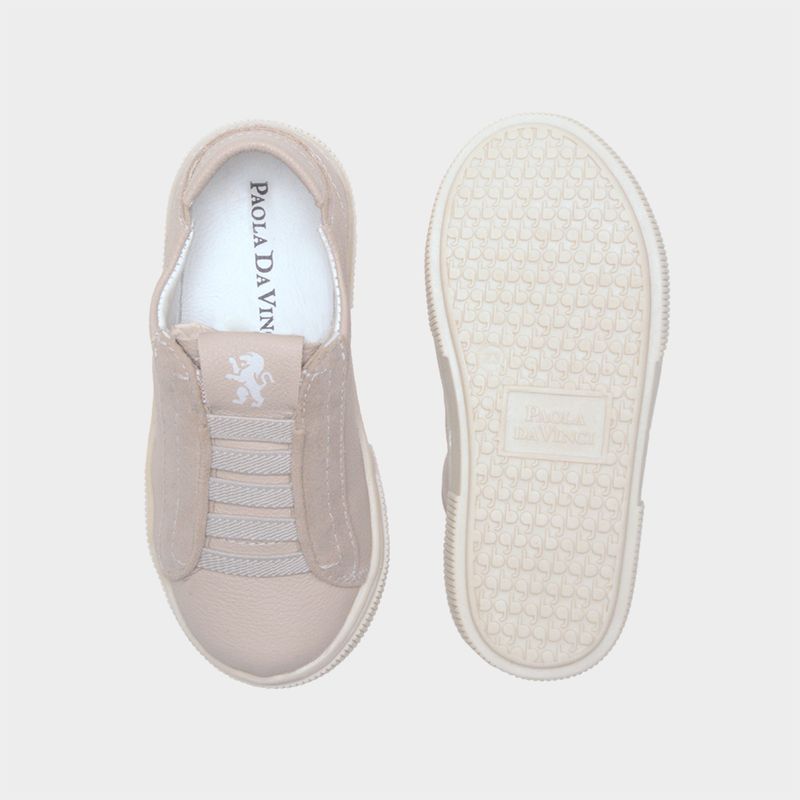 Tênis toddler masculino em couro nude da Paola Da Vinci é a escolha ideal para acompanhar os passinhos com muito conforto e elegância. Confeccionado em couro legítimo macio, ele oferece alta durabilidade e um toque suave nos pezinhos delicados. O modelo possui elástico no cabedal, que garante um ajuste perfeito e fácil de calçar, proporcionando praticidade no dia a dia.