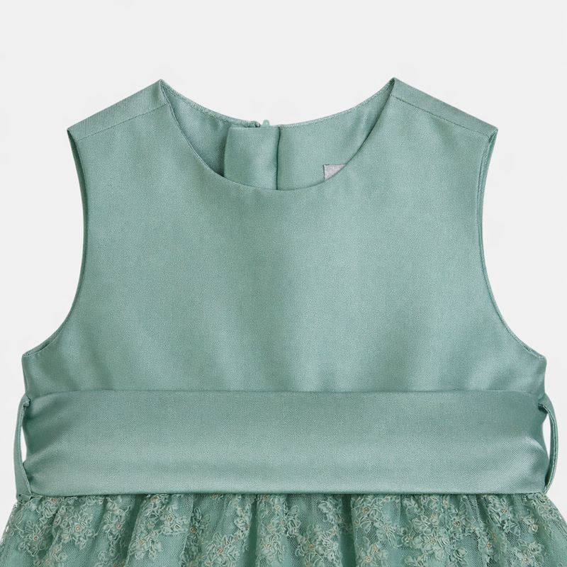 Vestido Bebê Atelier Tule Bordado Flores Verde em tom verde suave traz delicadeza e leveza para momentos especiais. O tecido acetinado no corpo garante estrutura elegante, enquanto a saia em tule bordado cria movimento e um visual encantador, sempre com toque macio e confortável para a pele do bebê.