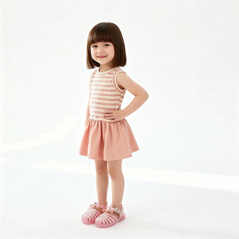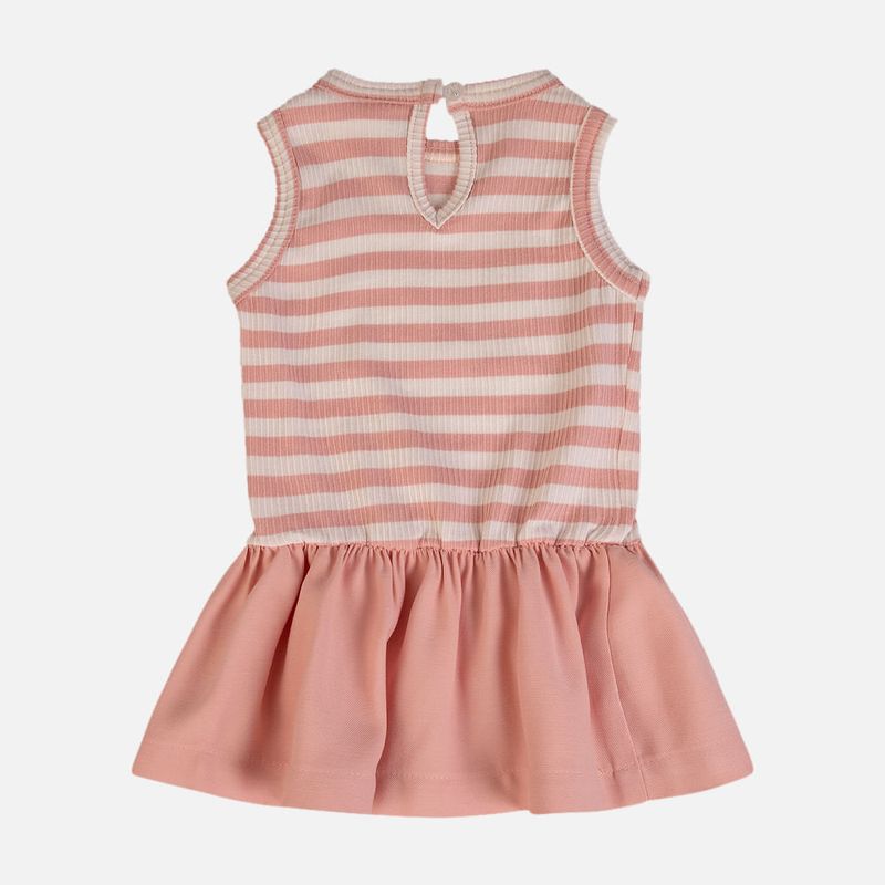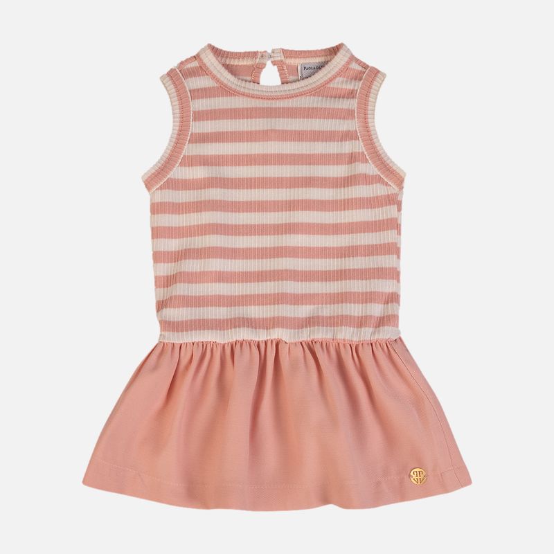 O vestido bebê canelado listrado rose é confeccionado em malha canelada macia, garantindo conforto e elasticidade para acompanhar cada movimento da bebê.