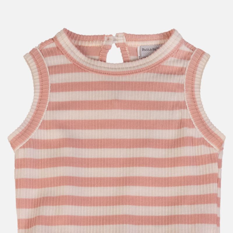 As listras em tom rose trazem delicadeza ao visual, enquanto o fechamento nas costas oferece praticidade no vestir e um caimento sempre confortável.