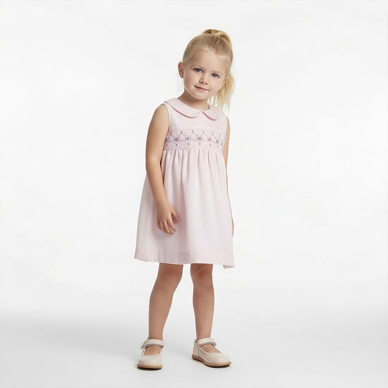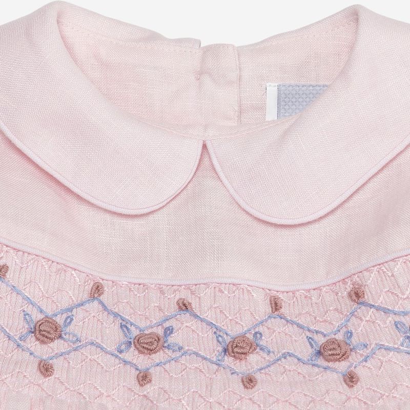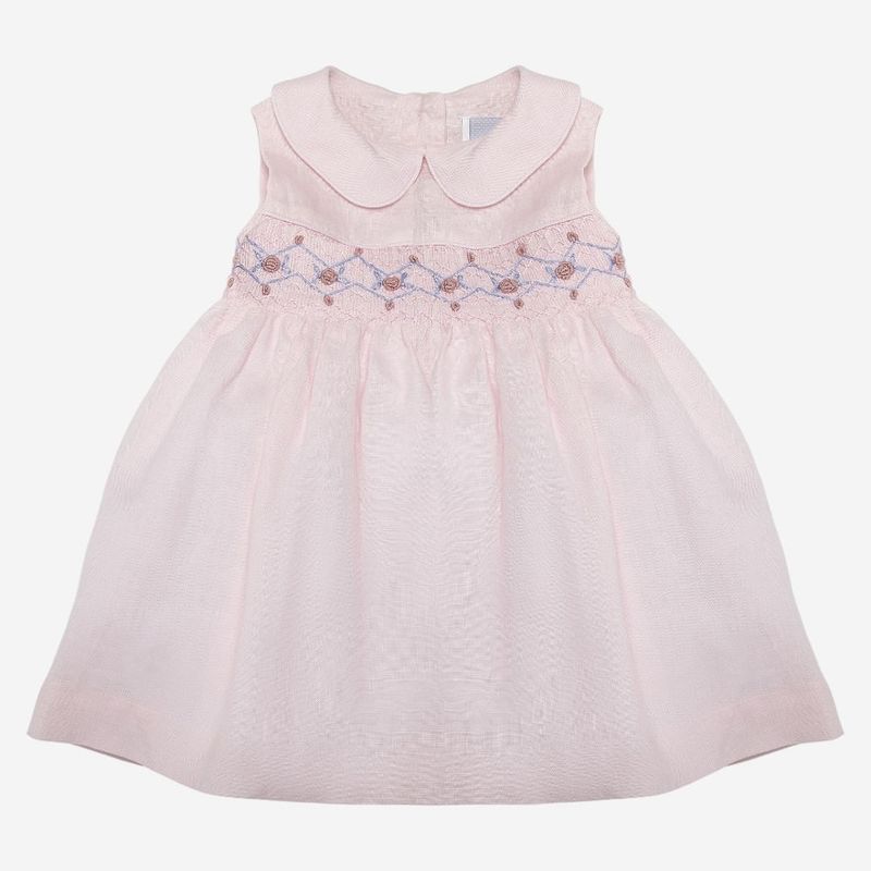 Vestido Bebê Feminino Puro Linho com Ponto Smock - ROSA BEBE