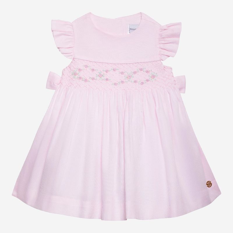 Vestido de Bebê em Tricoline Rosa com Ponto Smock