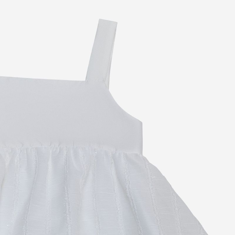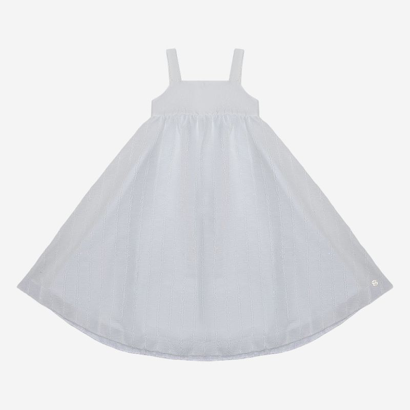 Seu design clássico com alças largas e saia ampla proporciona um caimento impecável e confortável. Ideal para compor produções refinadas e atemporais, o branco puro traz frescor e leveza para um visual sofisticado.
