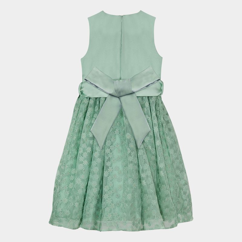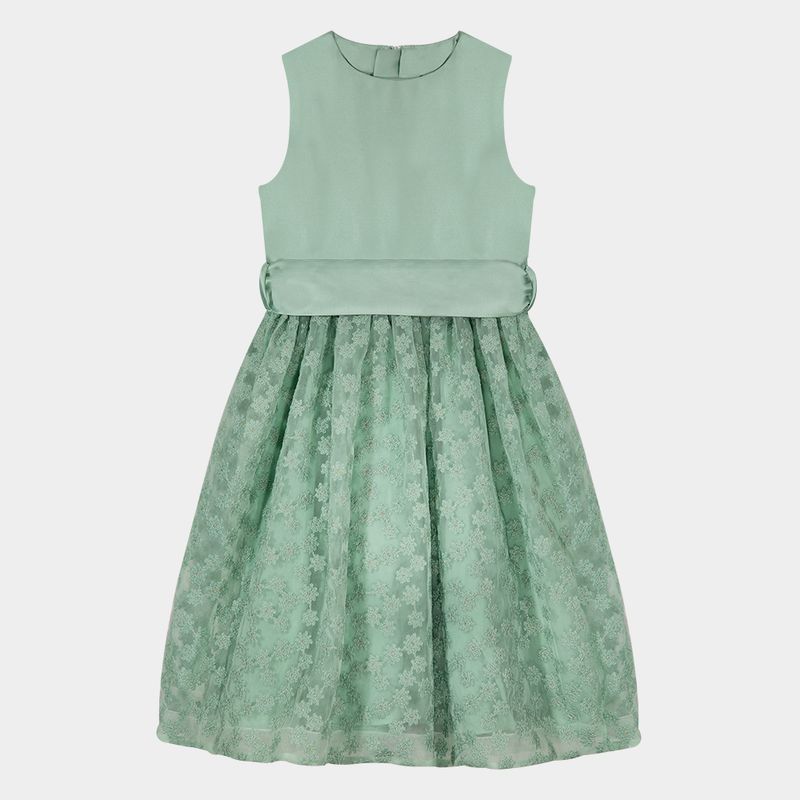 Vestido Infantil Feminino Atelier Tule Bordado Flores - VERDE