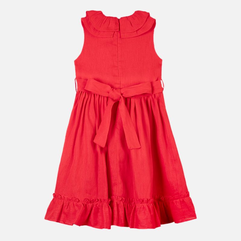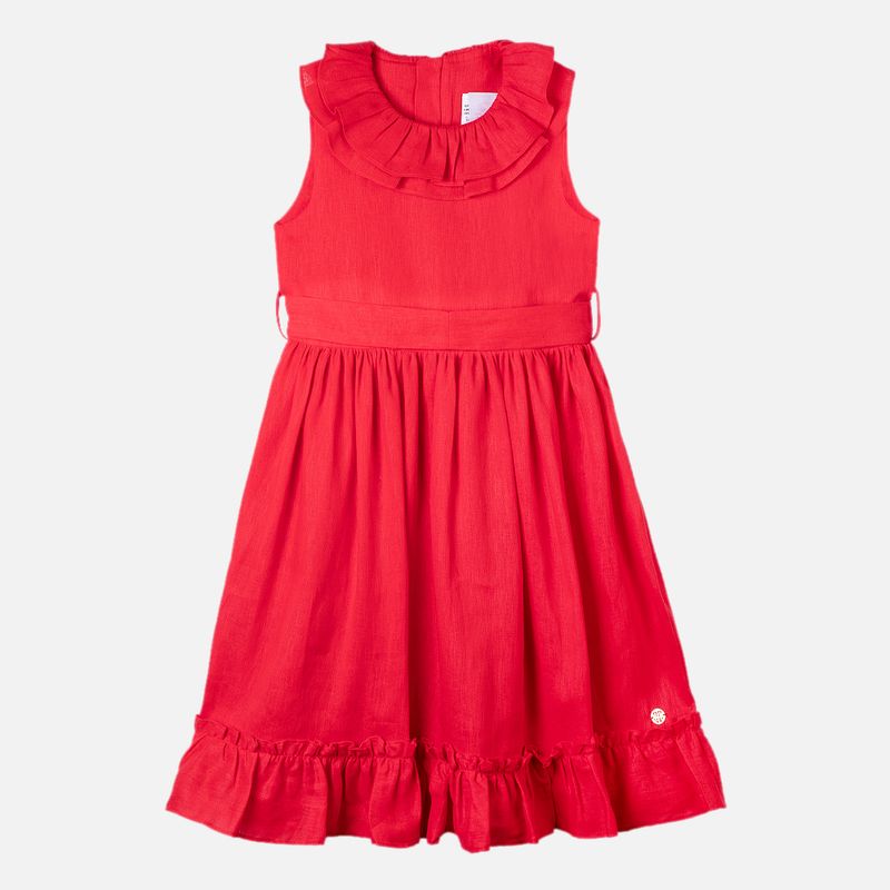 Vestido infantil em puro linho vermelho combina elegância e leveza em uma peça cheia de charme. Confeccionado em 100% linho, um tecido natural, fresco e extremamente confortável, ele garante bem-estar para a pele sensível da criança. O tom vermelho traz alegria e personalidade, enquanto o decote com babado duplo adiciona um toque delicado e sofisticado ao visual.