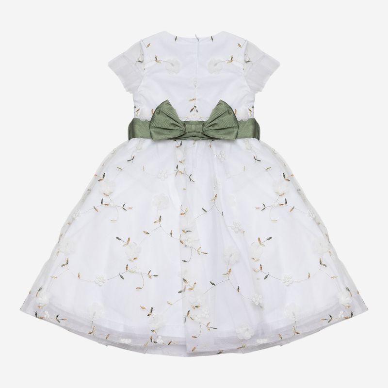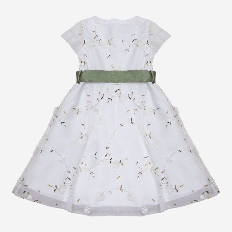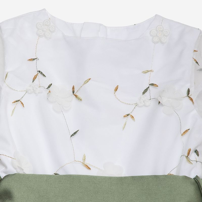 Vestido Infantil Feminino Tule Bordado Flores - VERDE