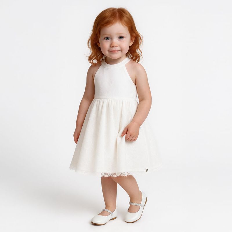 Com mangas cavadas e caimento leve, a peça valoriza a silhueta infantil com movimento natural e fluido.
